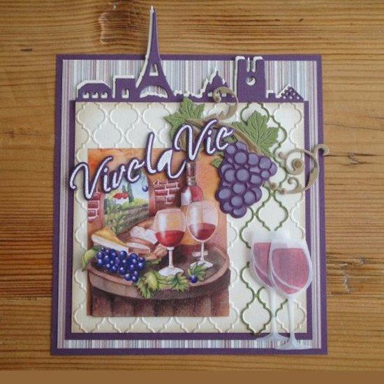 Paris horizon with the Eiffel tower is an easily identified landscape and coordinates so well with the wine theme in this collection from Marianne Design.