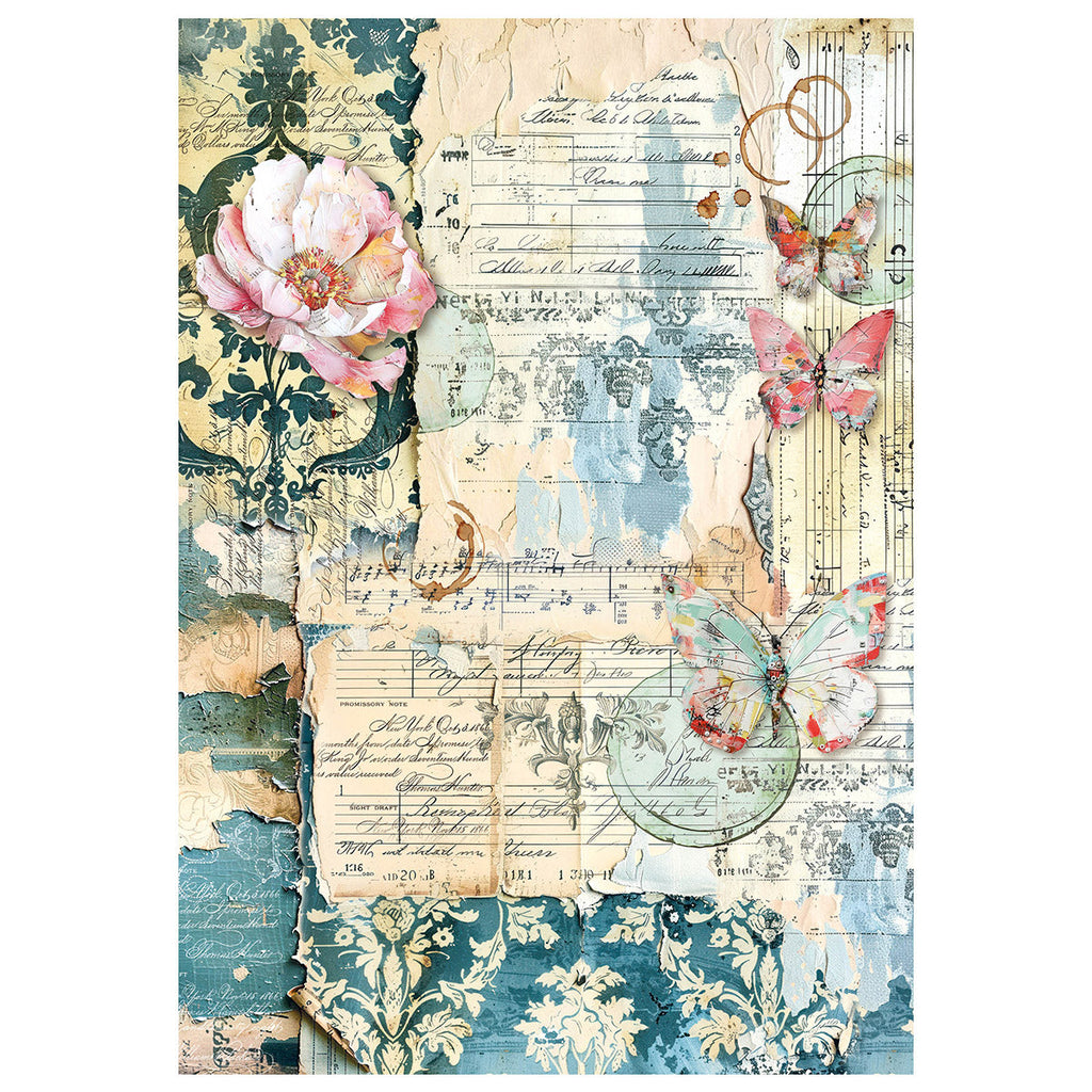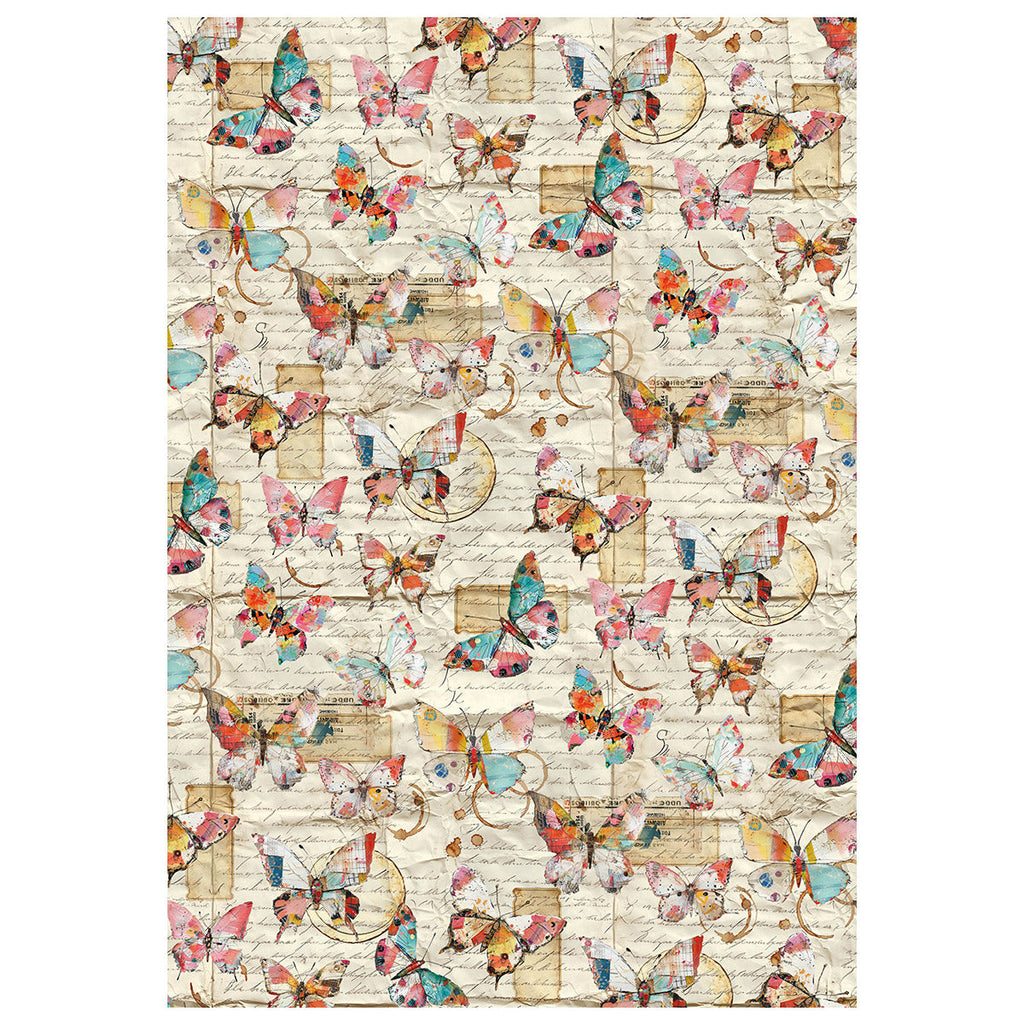 These A4 sheets of rice paper have colourful hues with a vintage rustic feel, featuring women, florals, butterflies and more.