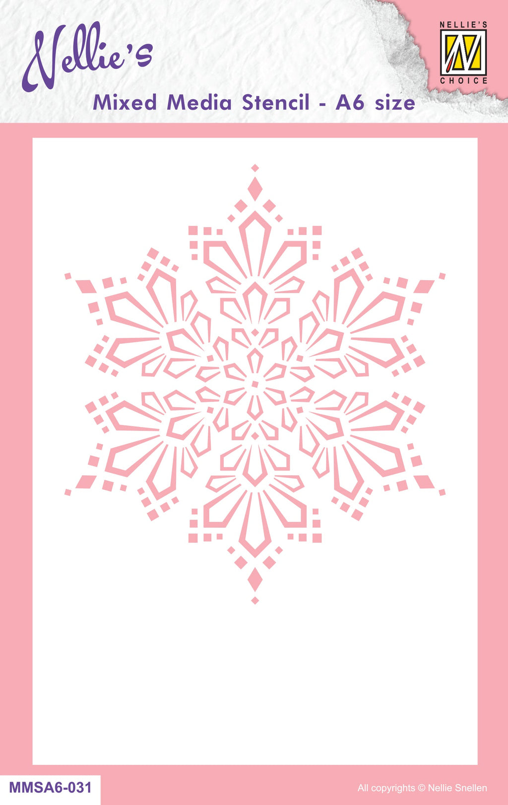 Nellie's Choice Mixed Media Stencil A6 Size - Christmas - Snow Crystal