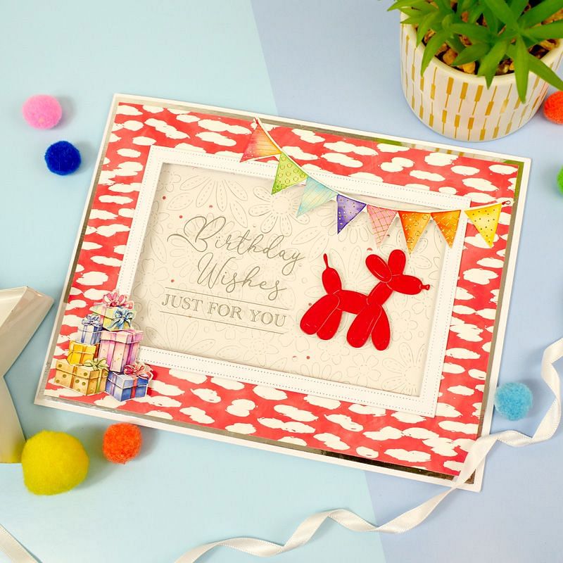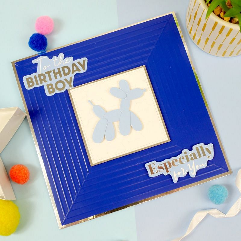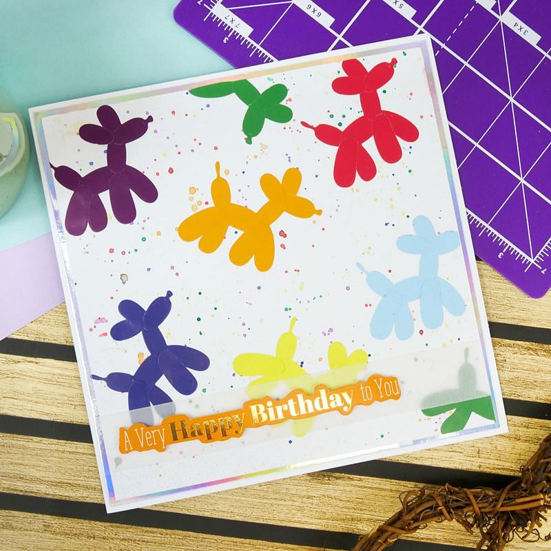 The Moonstone Limited Edition Dies - Balloon Dog includes all the elements you need to make a dimensional balloon dog. Layer the ear and two leg pieces onto the body for a fun centrepiece complete with debossed details for a shine effect. Cut and colour using Prism colouring mediums or cut from Mirri for a striking effect. This lovely die set makes cool cards for a variety of occasions and recipients of all ages.