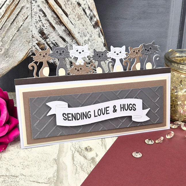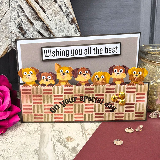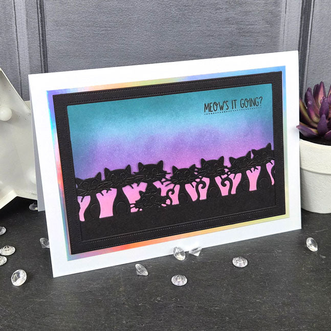 Cut stunning designs into the top edge of a 6” wide piece of cardstock for beautiful panels and even into card blanks for shaped card edges. Moonstone Dies - On-The-Edge - Cats & Dogs includes two fabulous designs: the first design features a cute line of cats and the other a delightful row of peeping pups. Use the dies alone or try pairing them together to create unique scenes.