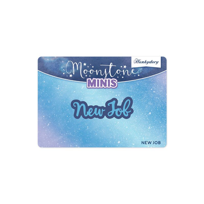 The Moonstone Minis – New Job die set includes 2 new cutting dies. One is a sentiment and the other is a shadow die, perfectly complementing each other. The sentiment; ‘New Job’, is in a beautiful script font with delicate swirls and the co-ordinating shadow die allows the sentiment to stand out on your papercraft projects.