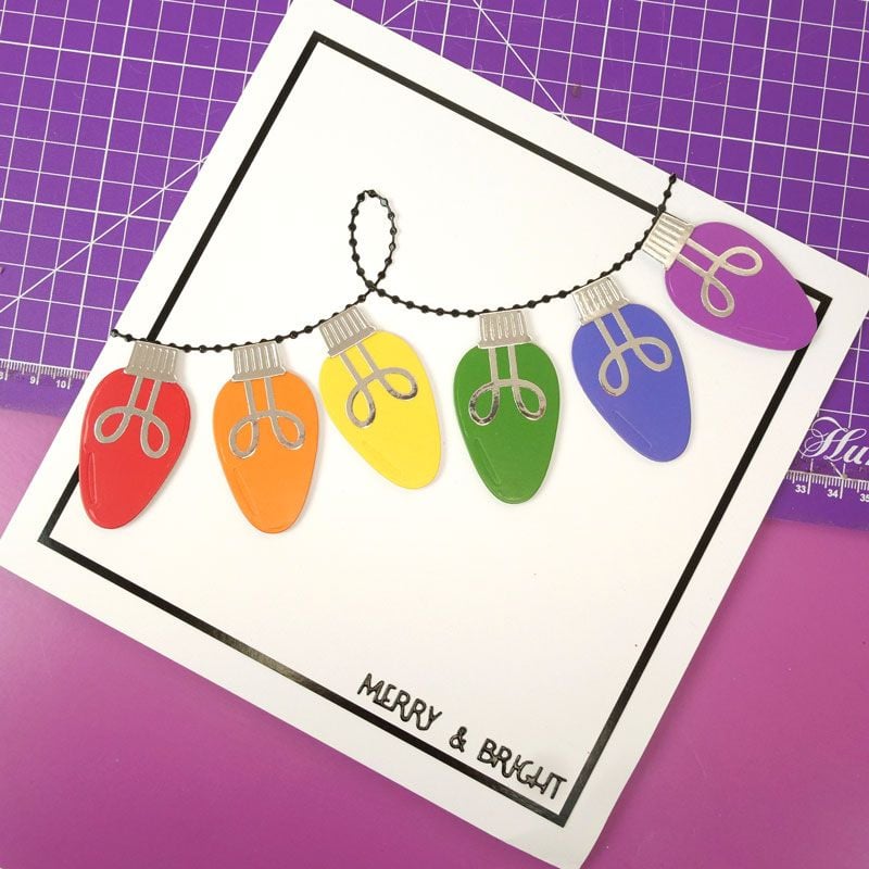 Be merry and bright with the Moonstone Dies - Bright & Beautiful Bulbs die set that includes all the dies you need to create three bulbs to be arranged as Christmas lights. The main bulb shape and topper has debossed details for additional texture. Cut all the pieces out of coloured cardstock, Mirri or Stickables Adhesive Sheets, layer and arrange along a length of ribbon or twine. Perfect for recipients of all ages and will work with other Moonstone Die sets, For the Love of Stamps sets and Papercraft Collections.