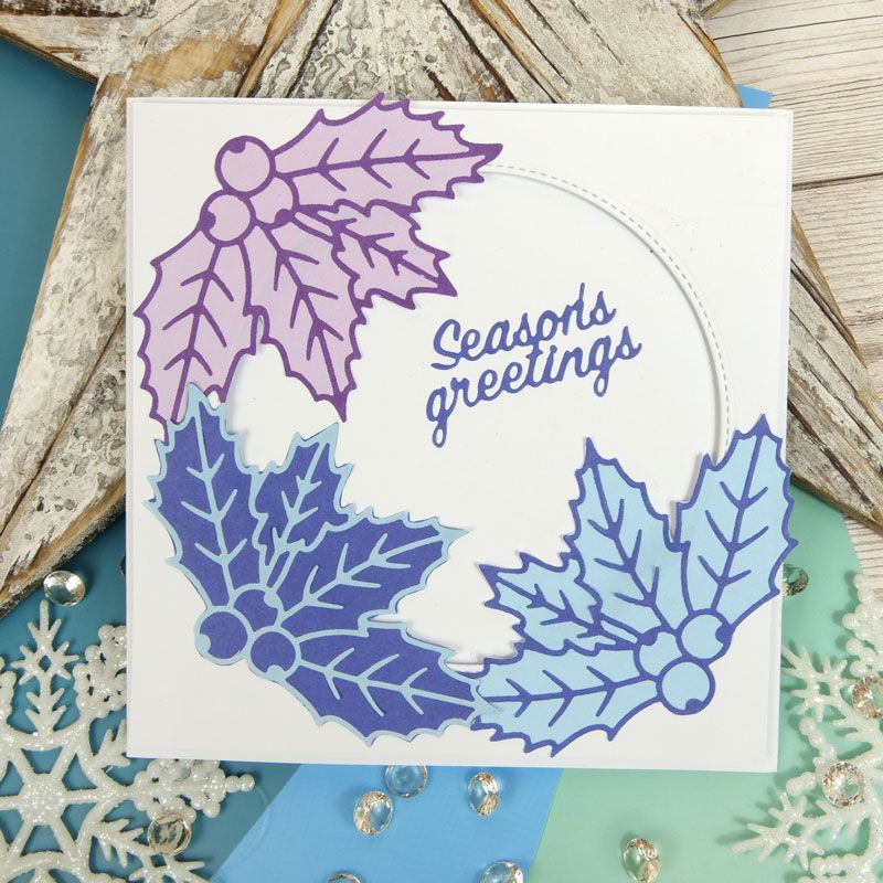 This fabulous Christmas icon is a must-have centrepiece or can be cut multiple times and arranged to create a festive background. The Moonstone Dies - Sweet Holly Sprig includes a large holly sprig arrangement of 4 leaves and 3 berries, and works perfectly with our range of Stickables Adhesive Sheets. Alternatively, cut from coloured cardstock and paper piece, or cut and stick onto Ink Me! Cardstock and add colour using our range of Prism colouring mediums. With so many ways to use this iconic die, this is an essential for any Christmas project.