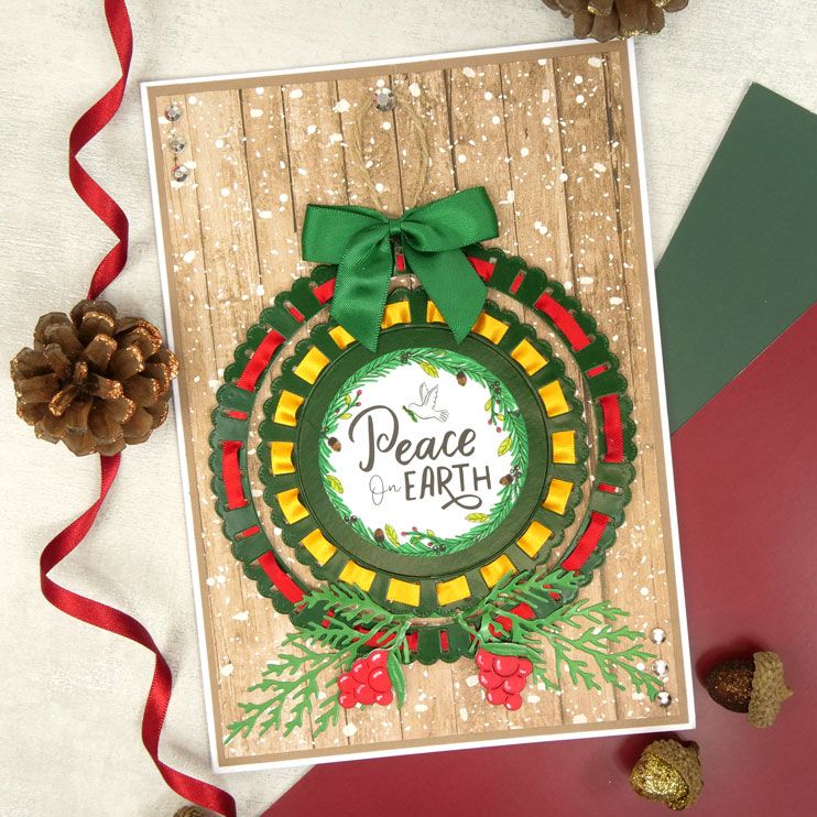 The high quality dies can be cut into Adorable Scorable Cardstock, Shimmer Card, Mirri, parchment, patterned paper, Kraft and even fabric. These beautiful frames can be used for any occasion and can even be cut from Christmas colours to create fabulously festive cards and projects. Add a selection of die cut flowers and foliage to create a ribbon threaded wreath for any time of the year!