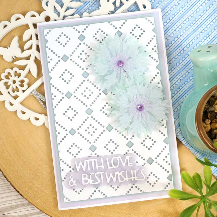 Create a paper pierced effect with ease with the Pierced Background Panels Collection and decorate the delicate panels with the Dimensional Cornflower and Sunflower die sets. Complete your cards and projects with the Heartfelt Sentiments Collection that includes eight essential sentiments complete with shadow dies.