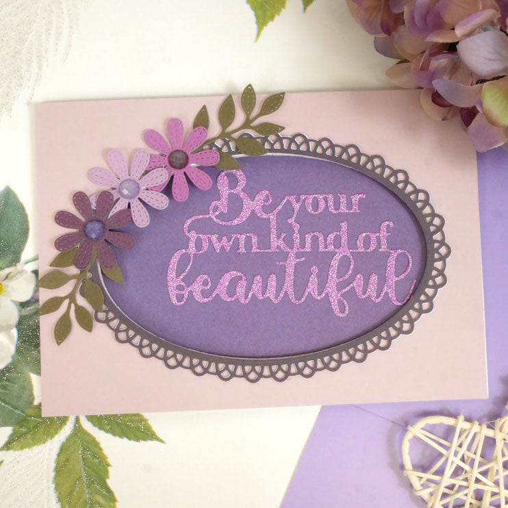 Create beautiful mats, layers, frames, shaped cards blanks and more with the Moonstone Dies - Lovely Lace Nesting Dies - Ovals set. The 5 oval shaped nesting dies have a lovely lace edge that will work with a variety of card styles and themes, and will pair perfectly with other Moonstone Die sets, For the Love of Stamps sets and even papercraft collections. The largest die will sit beautifully on a 5” x 7” card blank allowing you to create a variety of different card sizes from this set. Stamp a small sentiment onto the centre panel or use it to cut embellishments and small images from Little Books, Picture Perfect Pads and more.