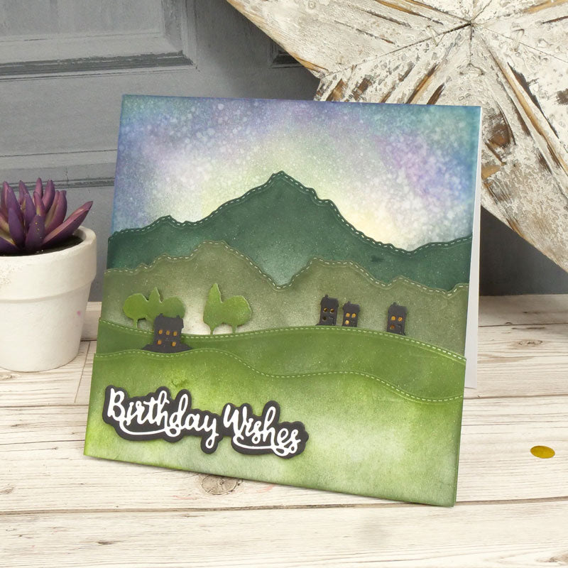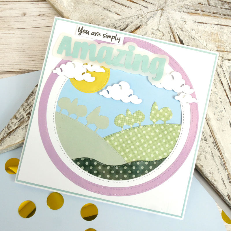 Let your imagination explode with creativity with the Moonstone Dies - Scene Builders Collection. Use these versatile die sets to create any scene of your choosing with a variety of different edging dies to choose from including waves, mountains, houses, clouds and more! Simply cut into coloured cardstock to create a fantastic edge complete with stitched details.