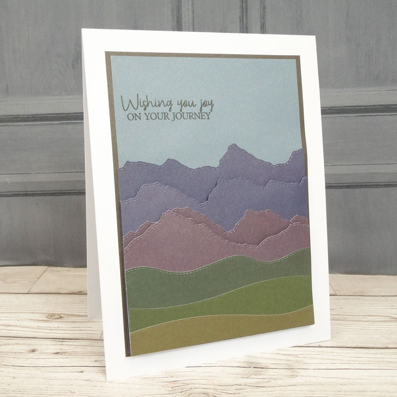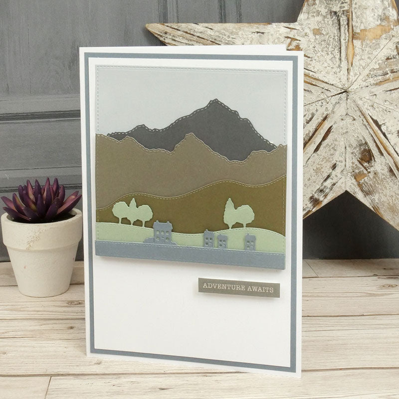 Create scenes ranging from mountainscapes, beaches, hills and so much more with Moonstone Dies - Mountains & Waves die set. This must-have die set includes a variety of different straight and wavy lines to cut and layer to create mountains, hills, sand, water, waves, roads and fun mats and layers! All the dies cut into the cardstock allowing you to create panels and strips as tall as desired, and each line includes stitched details on either side of the cut line allowing you to use the dies whichever way around you desire making them incredibly versatile. Complete your scenes with the houses and tree dies that also cut into the cardstock allowing you to extend the line using a craft knife or scissors.