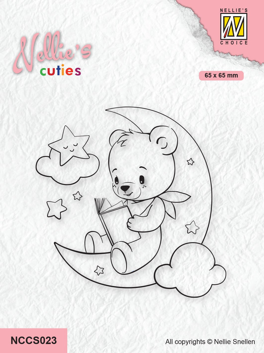 This adorable bear is reading a bedtime story to the stars while sitting on the moon. This stamp can be used to make a great cards for all kinds of occasions. Part of the Nellie's Cuties collection. Size: 65x65mm.