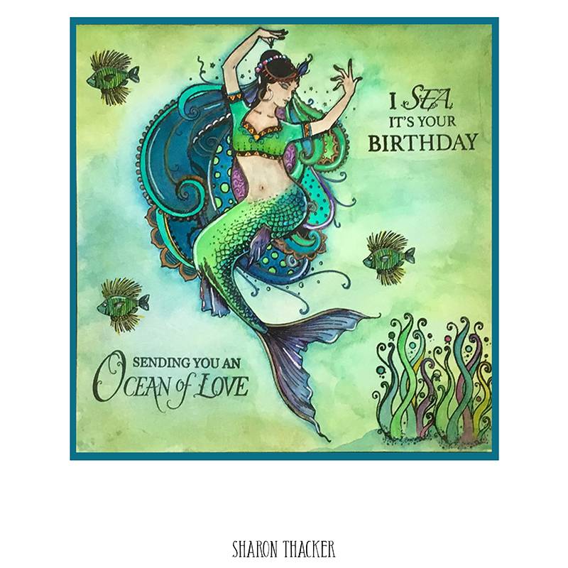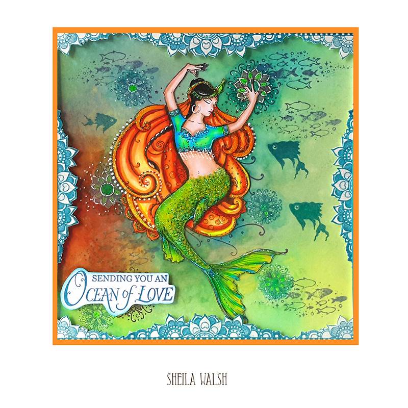 From the Women of the World series this is a beautifully hand drawn image that is an enchanting, hand drawn, mythical woman with a sweeping mermaid tail. This beauty will lure you to the craft-room again and again. She comes with additional elements for you to add to your projects. These stamps can be used with all sorts of medium including paper, card, mdf etc. These beautiful designs are perfect to use for paper craft and fabric projects. Ready to mount on an acrylic block the stamps can be used with ink pads, paint, or used with pigment and embossing powder. They are suitable for any other surface depending on the ink choice. Store flat away from heat and sunlight. A5 size stamp set deep etched, quality photopolymer, 11 separate images including the main image, border, sentiment and decorative elements. Designed and made in the UK.
