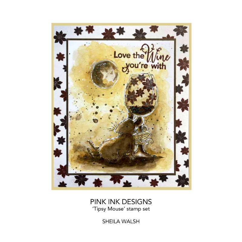 This A7 Tipsy Mouse set of 4 stamps is part of the Mice collection from the Wee Folk series of stamps from Pink Ink Designs. You would think butter wouldn't melt with this cheeky winged mouse but it looks like he has been up to no good sipping on some wine, hic hic. He comes with two little flowers and a fun 'Love the wine you're with' sentiment. All the Wee Folk Series work brilliantly together. These stamps can be used with all sorts of medium including paper, card, mdf etc. Ready to mount on an acrylic block the stamps can be used with ink pads, paint, or used with pigment and embossing powder. They are suitable for any other surface depending on the ink choice. Store flat away from heat and sunlight. Deep etched, quality photopolymer. Designed and made in the UK. A7 overall package dimension four separate images. Deep etched, quality photopolymer.