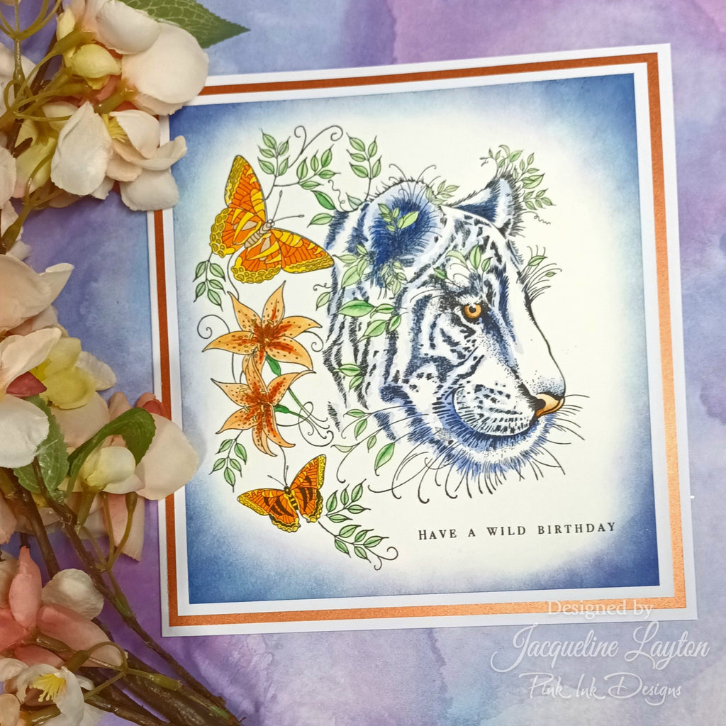 This clear photopolymer stamp set, Sher Khan is part of the Fauna Series from Pink Ink Designs. This stamp set features a beautiful main image with nine smaller images and sentiments. These stamps come ready to mount on an acrylic block. Simply adhere to an acrylic block and use with your favourite inks, markers, embossing powders, and other crafting mediums. These stamps can be used on cards, scrapbook pages, and other paper crafting projects. They are suitable for paper, fabric, or any other surface depending on the ink choice. Made in the UK. 10 stamps. Size 6 in x 8 in (15cm x 20 cm).