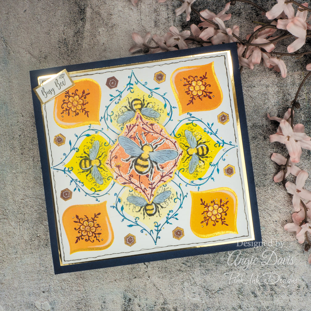 This clear photopolymer stamp set, The Flight Of The Bumblebee is part of the Wings Series from Pink Ink Designs. This stamp set features thirteen beautiful stamps. These stamps come ready to mount on an acrylic block. Simply adhere to an acrylic block and use with your favourite inks, markers, embossing powders, and other crafting mediums. These stamps can be used on cards, scrapbook pages, and other paper crafting projects. They are suitable for paper, fabric, or any other surface depending on the ink choice.