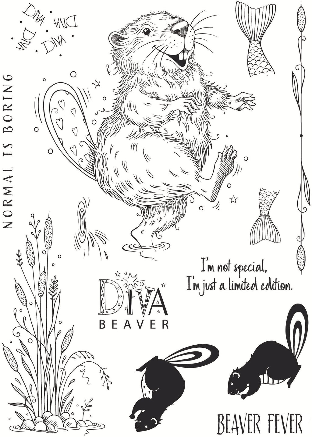 Pink Ink Designs Beaver Fever 6 in x 8 in Clear Stamp Set