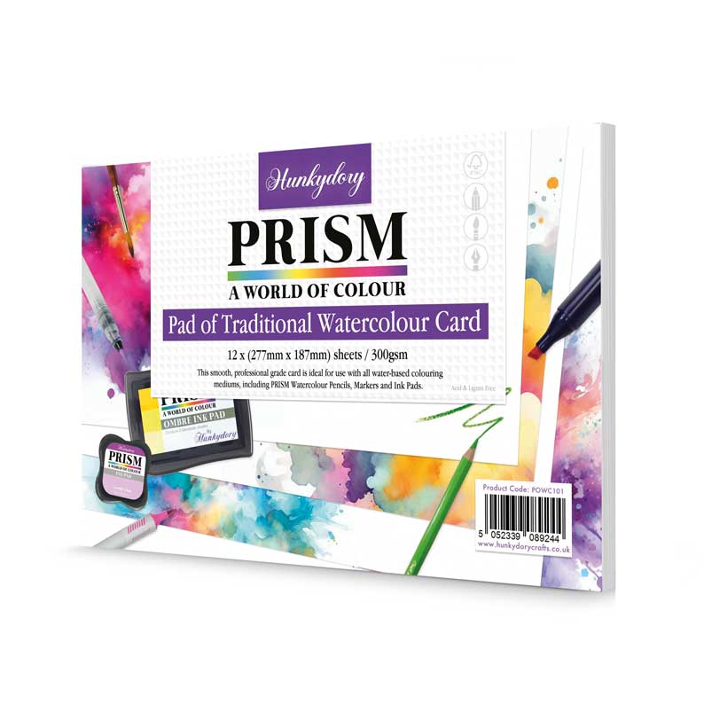 The Prism Pad of Traditional Watercolour Card contains 12 sheets of smooth, professional grade card ideal for use with all water-based colouring mediums, including Prism Watercolour pencils, brush markers & ink pads.