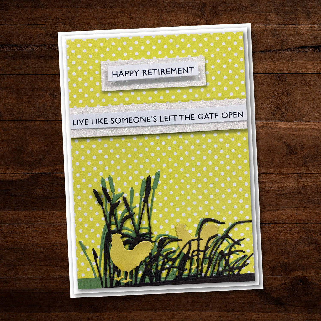 The Die-cut shape measures approximately: 65mm for the tallest part of the die and 36mm for the shortest part of the die and is 90mm for width.