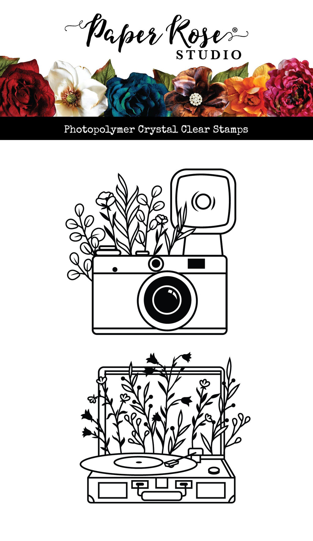 Vintage Floral Camera & Record Player Clear Stamp 34470