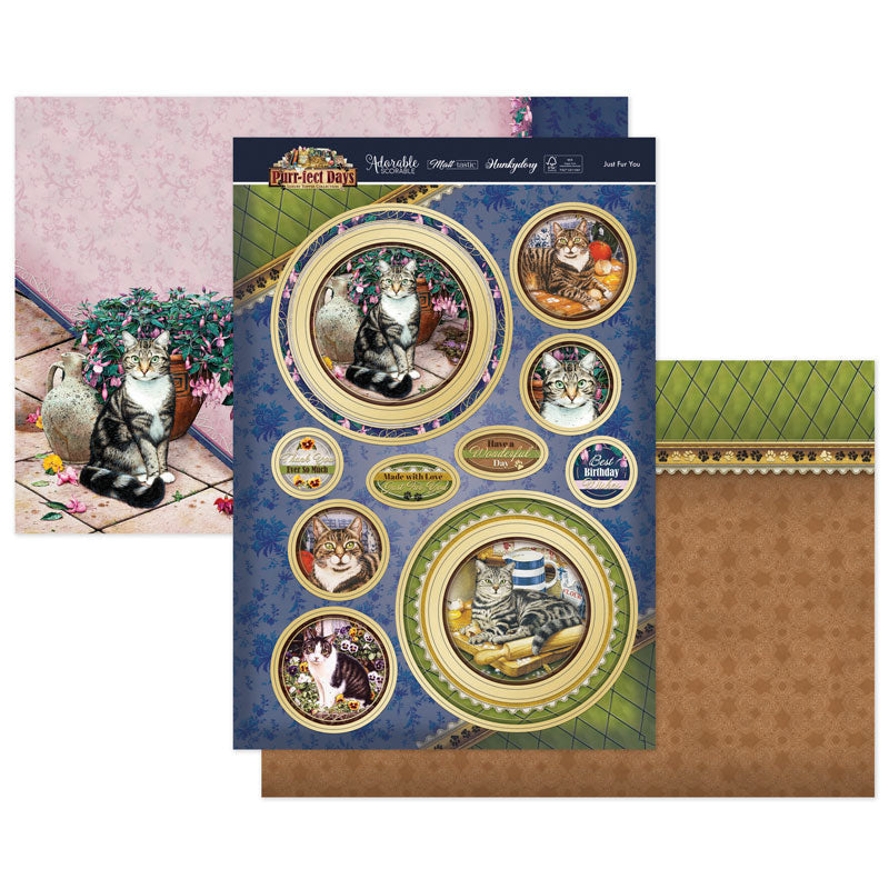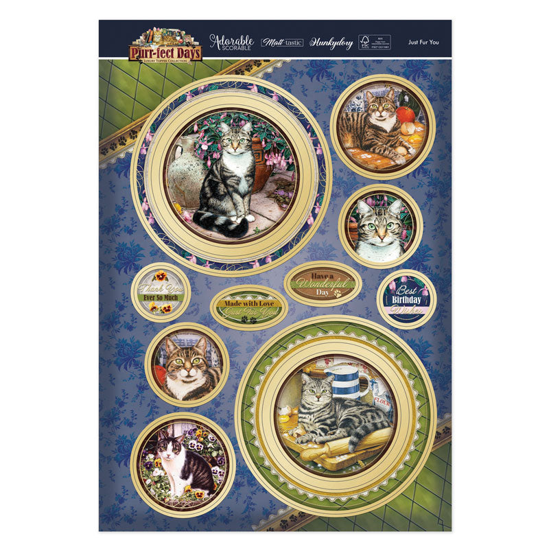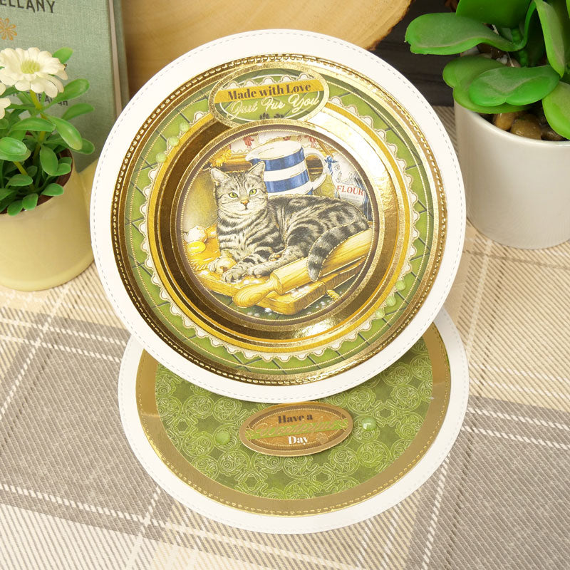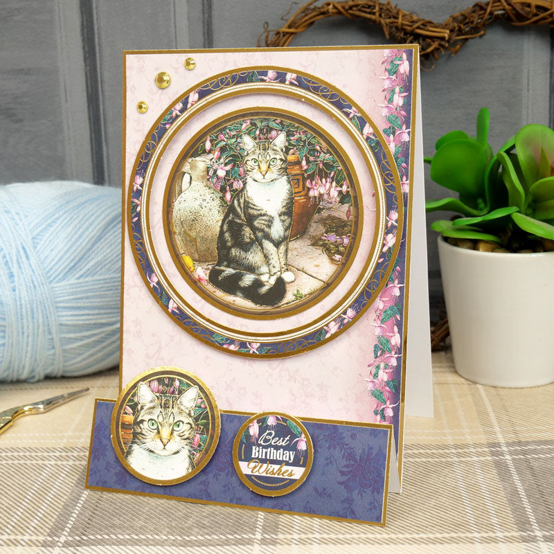 The Purr-fect Days Collection is a beautiful collection featuring classic cat imagery. Each image has its own expertly painted background and theme. From antiques, dressing tables, artists studios, cosy kitchens and pretty gardens to name a few, there’s something for every cat lover! All adorned with golden foil swirls and accents, pretty florals, detailed vintage embellishments, pawprints and complimenting decorative patterns.