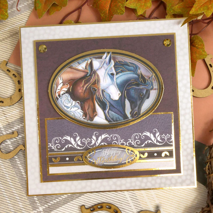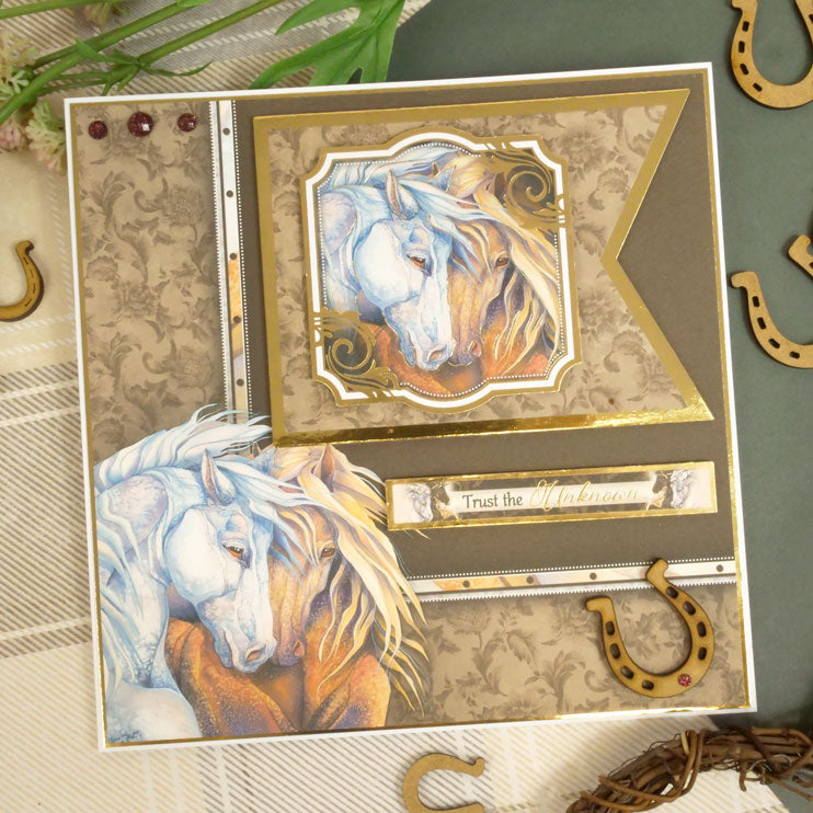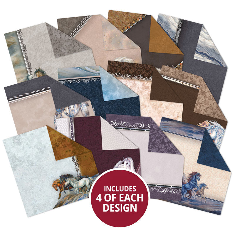 The Running Free 8” x 8” Paper Pad features 48 double-sided matt-tastic pages packed with the incredibly strong and beautiful horse artwork from the Running Free topper collection along with perfectly co-ordinating textures and patterns. Designs on one side showcase many of the beautiful horses and designs on the reverse feature patterned backgrounds of leather, stone textures, vintage damasks and more.