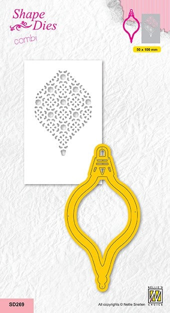 Nellie's Choice Shape Die - Christmas Ball With Inner Decor Stencil - Droplet