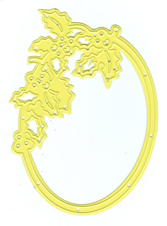 Shape Die Lene Design - Holly Frame. These shape dies cut a frame adorned with a decorative accent image. Size: 3" x 4".