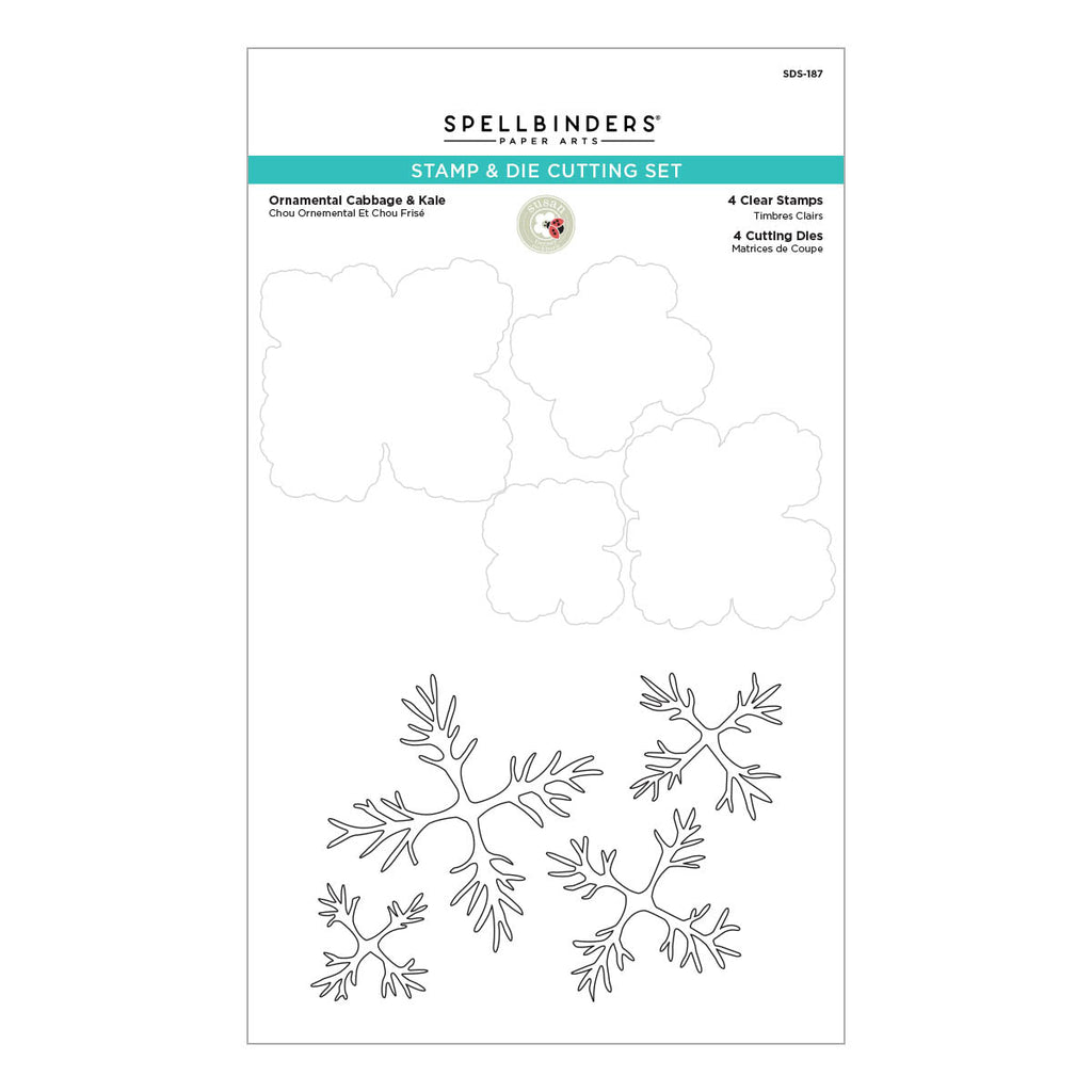 Ornamental Cabbage & Kale Clear Stamp & Die Set is from the Snow Garden Collection by Susan Tierney-Cockburn and features a set of four thin metal cutting dies and the coordinating stamps to create veining on each of the leaves. Stamp with white ink or add white embossing powder to the stamped images to create additional interest and dimension. This lovely set is perfect to create a lovely ornamental cabbage perfect for all seasons.