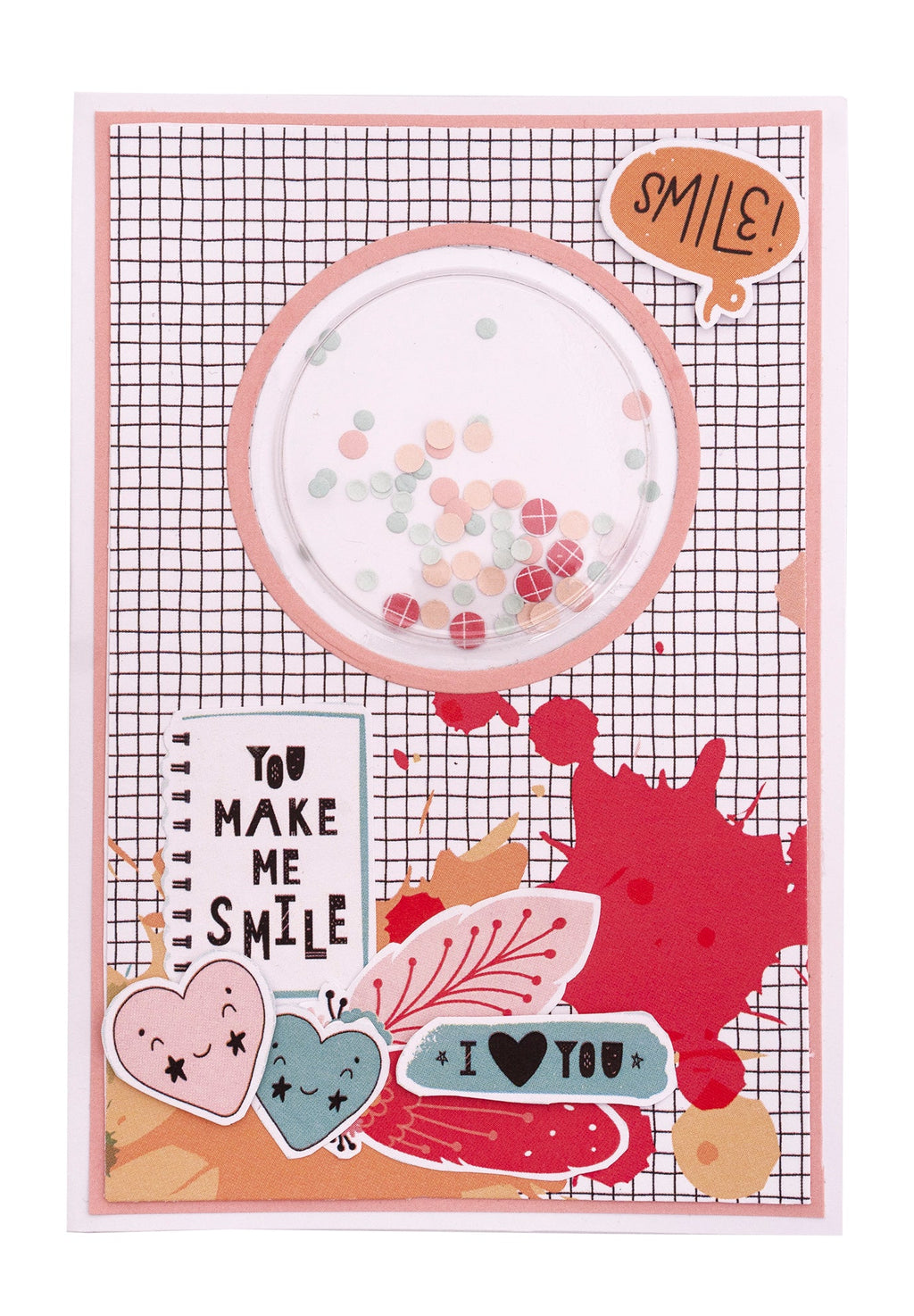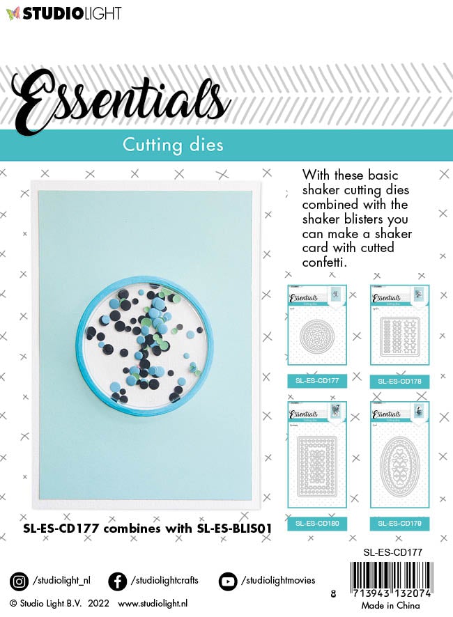 With this basic shaker circle cutting die when combined with the circle shaker blisters you can make a shaker card with circle shaped confetti.  Combines with SL-ES-BLIS01.