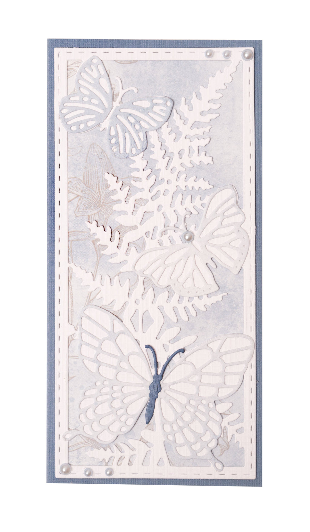 This set can be used on cards, invitations, scrapbook pages or in other art projects. These dies will create beautiful butterfly panels and layers for your paper craft projects! This set also includes extra butterfly embellishments perfect for finishing off your projects. 6 dies.