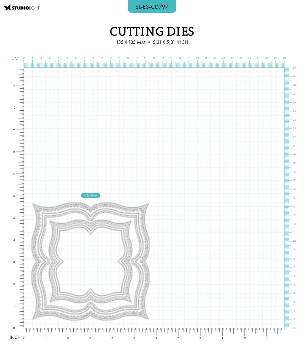 Use this die set to cut ornamental frames with a scalloped edge which can be nested or used alone. Die cut your shapes out of paper or vellum. Perfect for cards, scrapbook layouts or journal pages. 6 pcs.