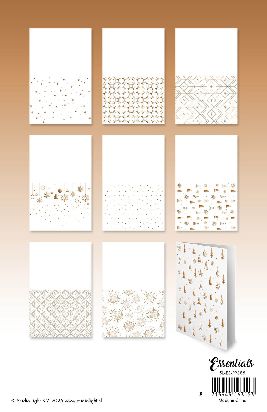 Spread holiday cheer with these bronze foiled cards. These cards are embellished with a variety of festive patterns perfect for Christmas. This 24 sheet set has 8 patterns, 3 of each pattern, 210gsm. Easy to create stunning, handmade cards that will delight loved ones this holiday season.