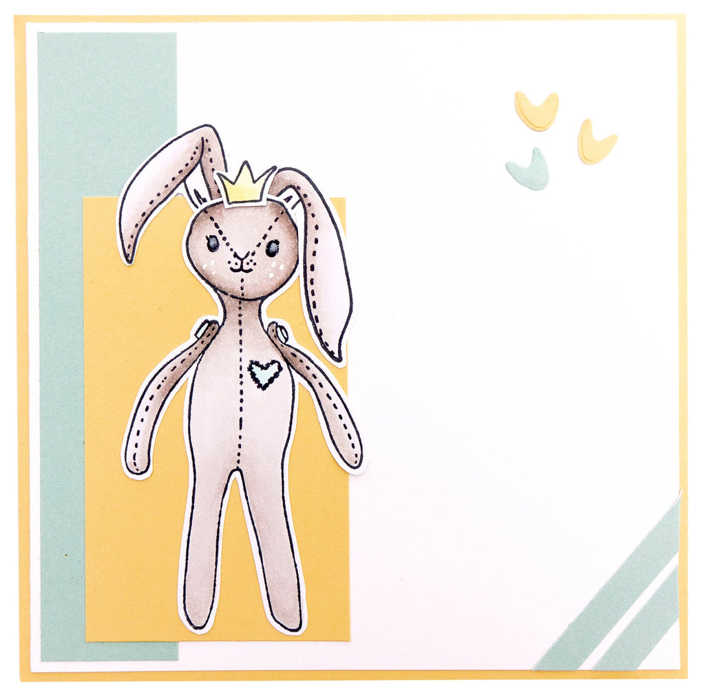 Perfect for new babies this stamp and cutting die set can perfectly cut out the stamped elements. The set includes everything needed to build a cute stuffed toy bunny and also includes clothing and accessories. The stamps are made of polymer and are soft and textured, fitting snugly within the matching dies. They can be used for scrapbooking, mixed media, journaling and card making. Suitable for all die-cutting machines. 15 Dies, 17 Stamps.
