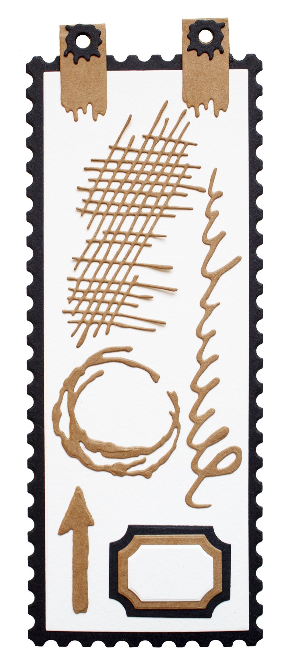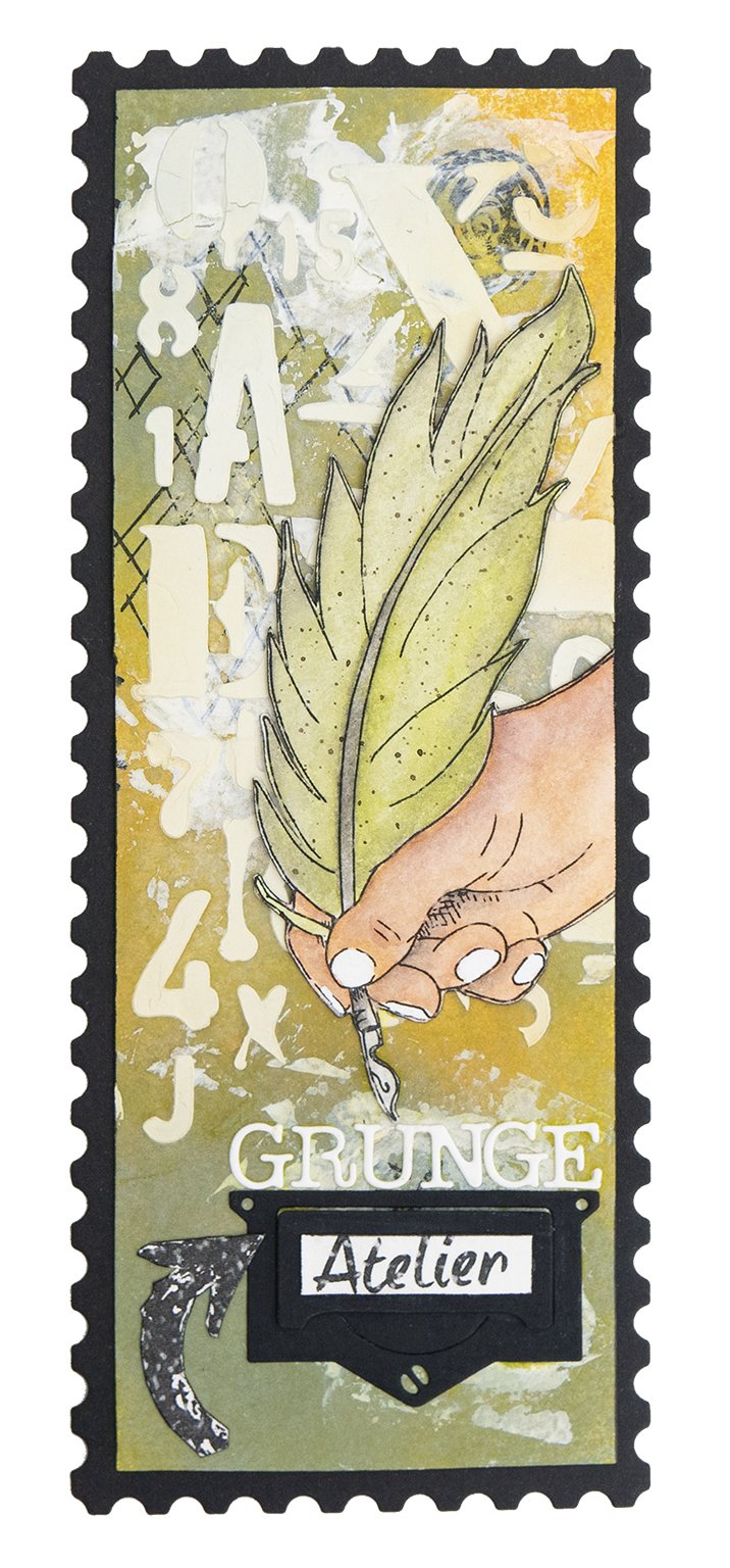 This slimline cutting die set with grunge elements will make a great addition to cards, scrapbook layouts and journal pages for any occasion
