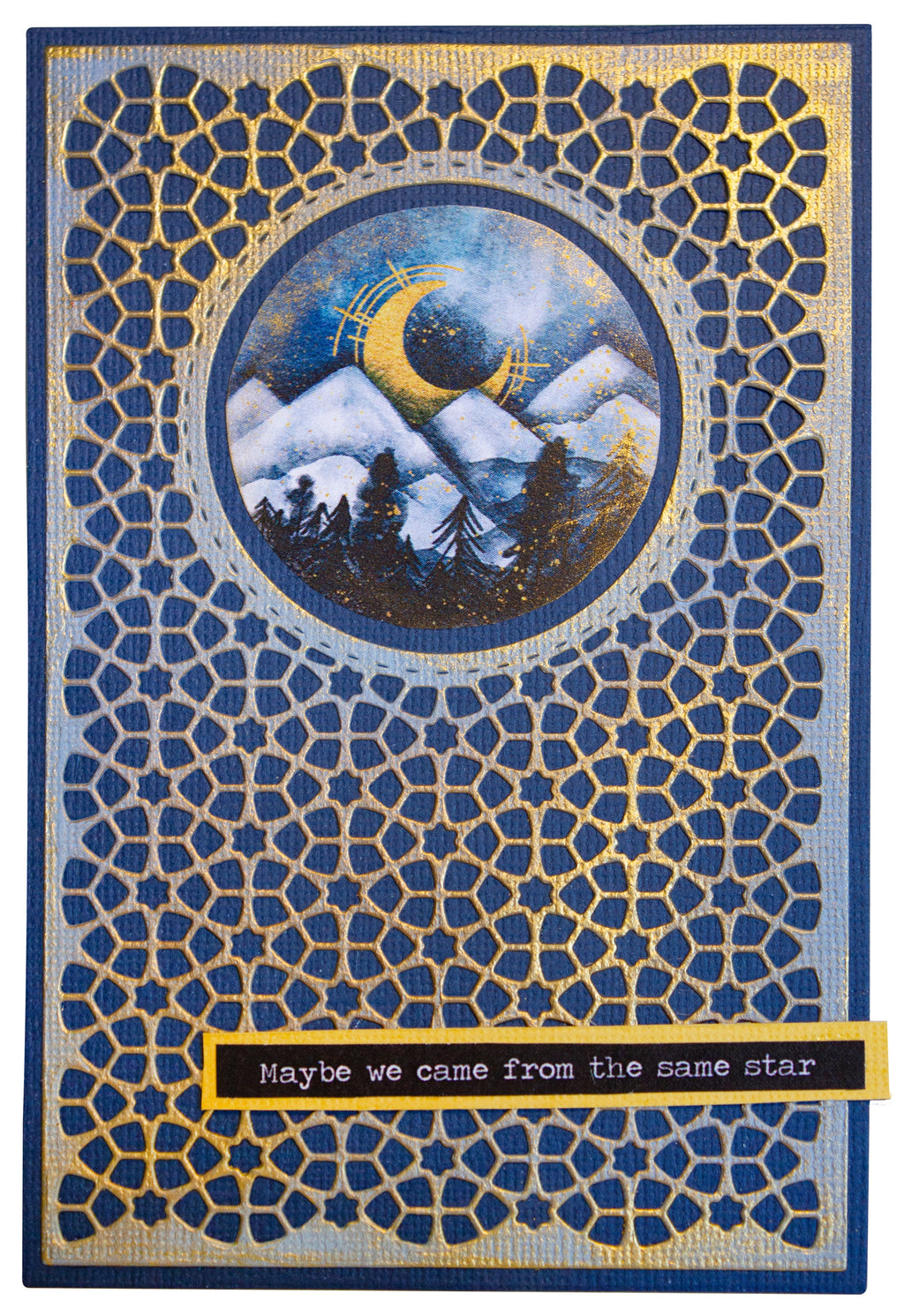 This Cardshape cutting die set contains a rectangular shape frame die with an intricate pattern design. Perfect to make interesting celestial inspired cards
