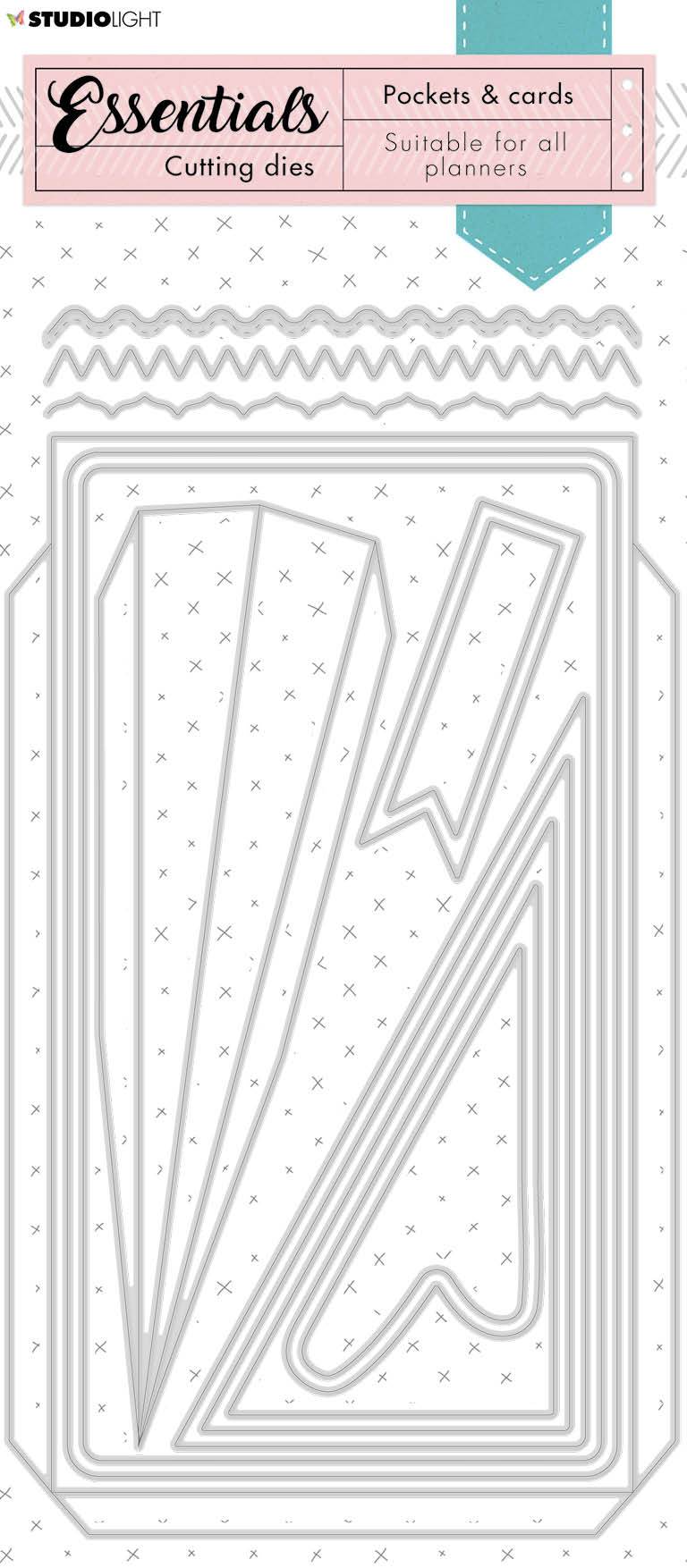 This die set with a big pocket is suitable for all planners.  The set includes a pocket cutting die, a card, edges and extra elements.  The slimline card shape cutting dies also fit inside this pocket. Perfect for your planners, scrapbook layouts or journal pages.