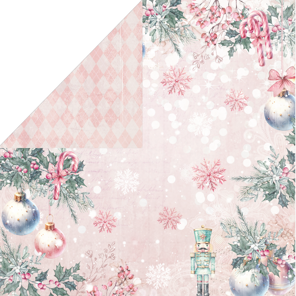 Each pad includes 24 double-sided sheets covered with the pastel pinks, blues, and purples featuring nutcrackers, Christmas trees, snowflakes, sugarplum fairies, and plenty of festive foliage and other seasonal images. It’s perfect for cardmaking, scrapbooking, giftboxes, and more.