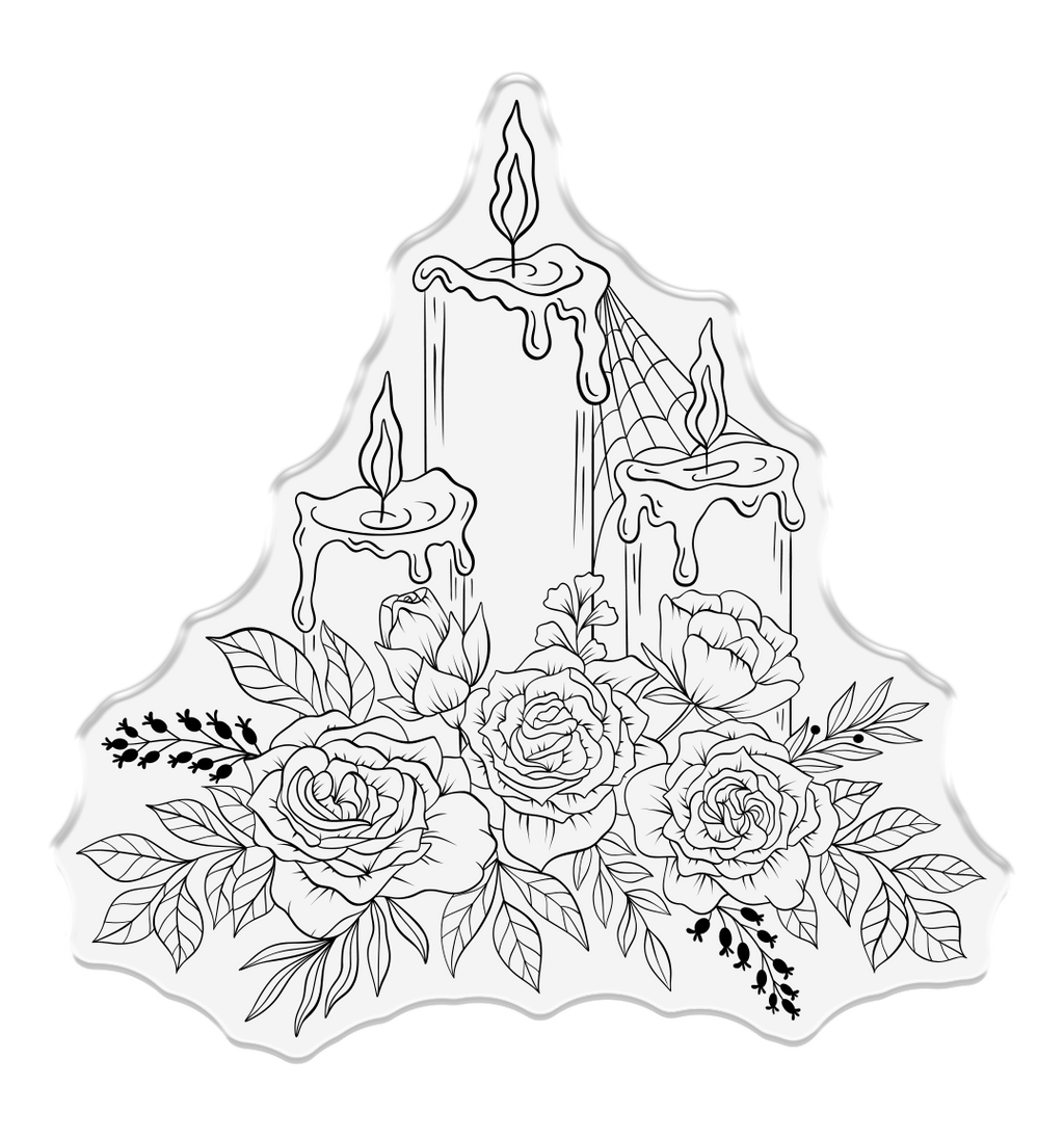 • 2-piece set includes one metal die and one clear acrylic stamp of a candle surrounded by roses
