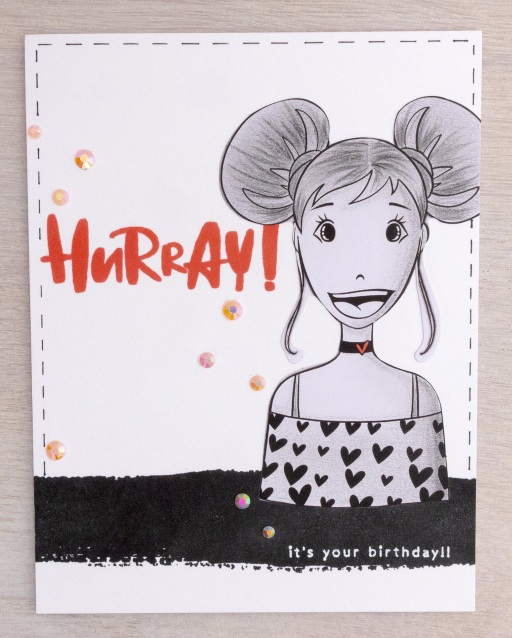 The Missees Collections of stamps are fun to mix and match to create your own girly character. Start with stamp set STAMPKJ05 Melanie to begin building your characters piece by piece. For even moreoptions, add STAMPKJ06 Tatjana and STAMPKJ07 Miranda for even more hairstyles, facial expressions and more. Coordinates perfectly with the full Missees Collection by Karin Joan.