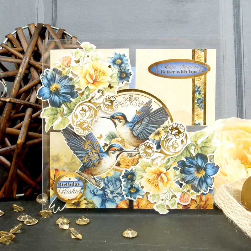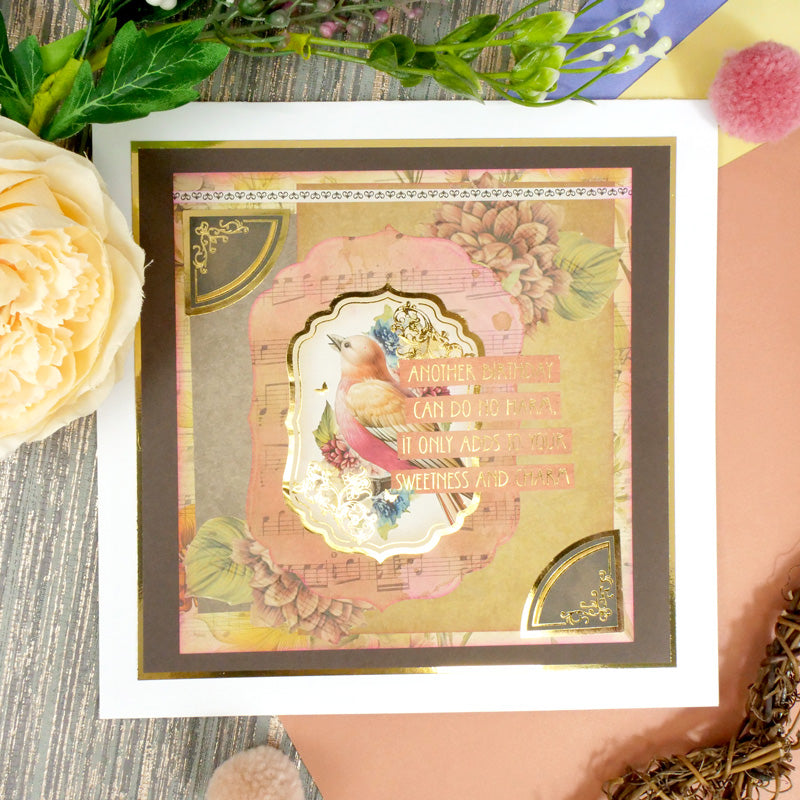 Pretty butterflies, musical instruments, birds and vintage inspired elements adorn every corner of this collection. Beautifully shaped toppers, borders, sentiments and finishing touches all specially foiled in our signature rich gold foil. This clever range will save you time on your projects and ensure the most professional finish with no stray adhesives spoiling your makes.