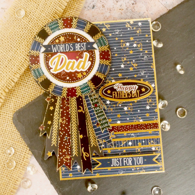 There’s a delightful mix of foil colours through the collection; our signature rich gold and stunning silver as well as speciality midnight black and even shimmering holographic. To really show off what can be done there is a unique cutting form for You’ve Passed so you can construct your own dimensional scene and World’s Best Dad has some really fun shapes and topper options too. The World is Your Oyster and A Bundle of Joy feature brand new topper shapes!