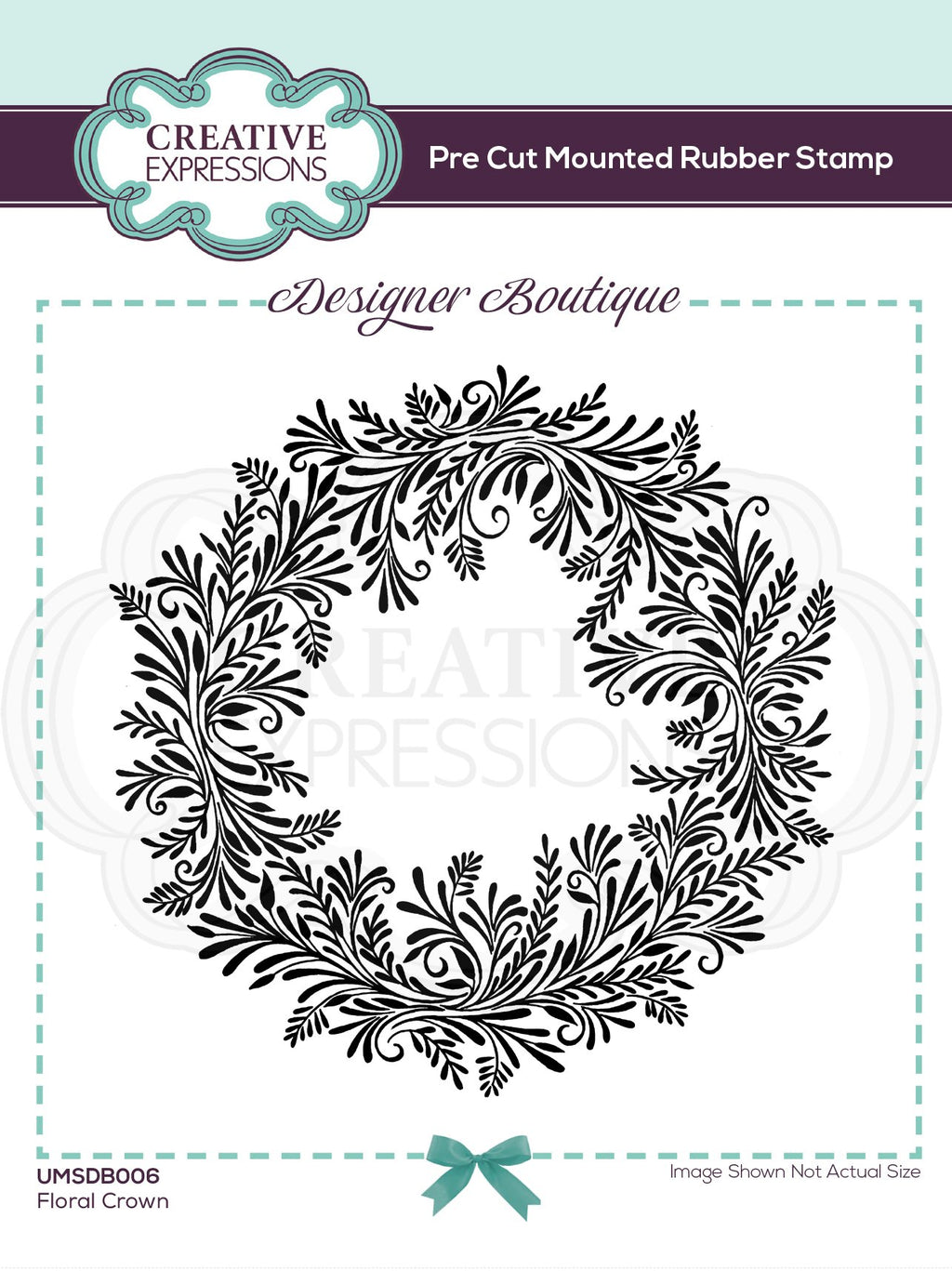 Creative Expressions Designer Boutique Collection Floral Crown Pre Cut Rubber Stamp