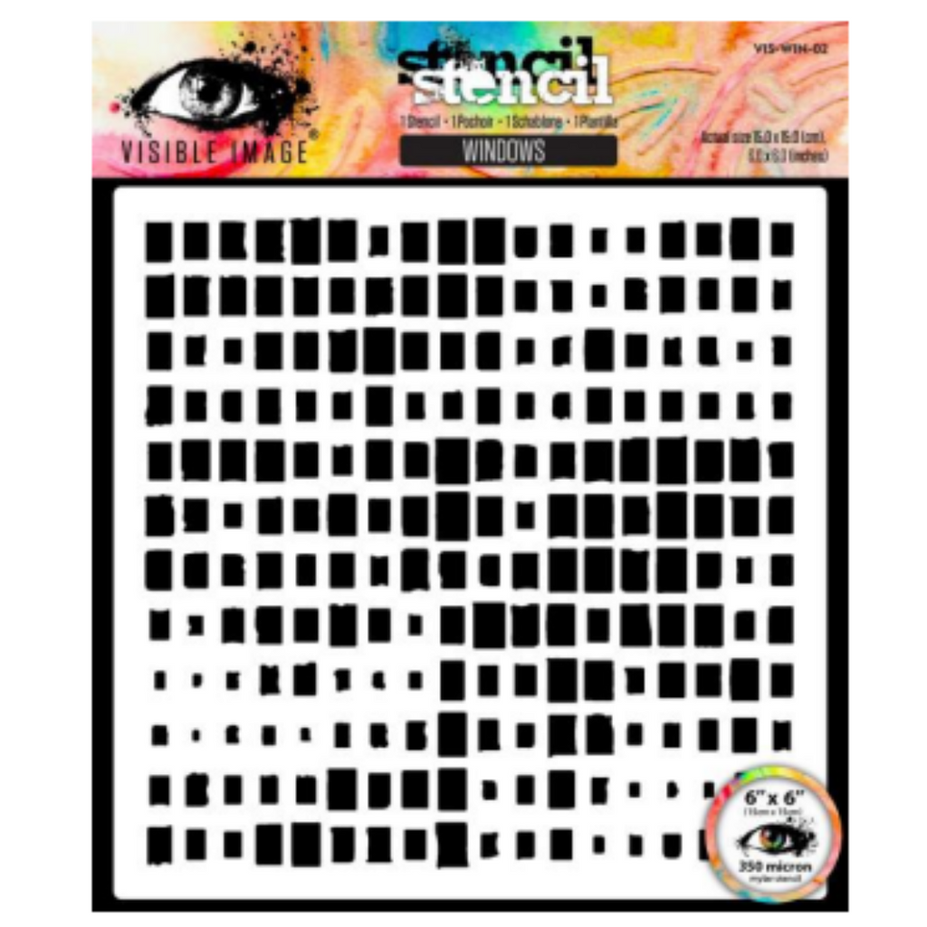 Visible Image Windows 6 in x 6 in Stencil. Add unique texture and charm to your projects with the Windows Stencil by Visible Image. This versatile 6x6 stencil features multiple distressed rectangle designs, perfect for creating layers of interest and depth in cardmaking, scrapbooking, mixed media, and more.