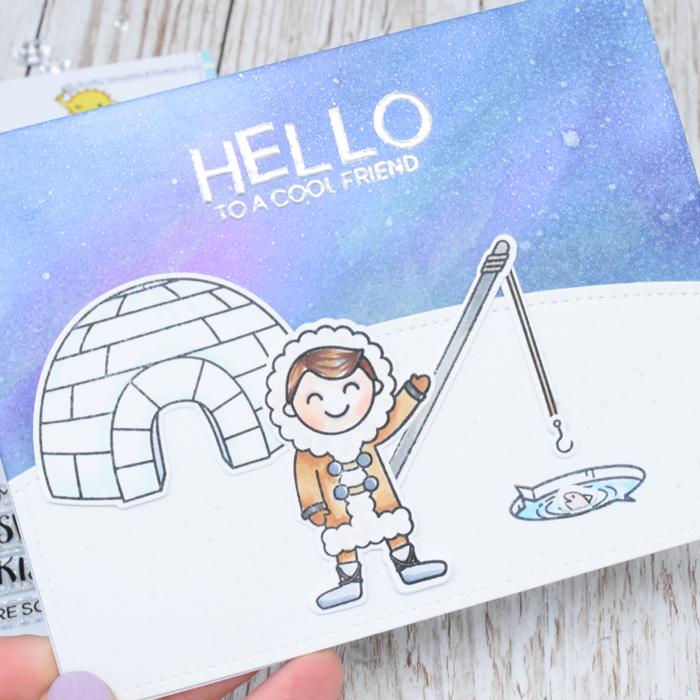 This die set is packed with cool images that are great for holiday cards and everyday creations. With a cosy family and plenty of extra accessories including an igloo, sled and fish. The water ripple can be stamped inside the ice hole or the bucket, and the fishing rod & line can be turned into spears for extra versatility. Coordinates with the Warm Hugs stamp set HFD 0010.
