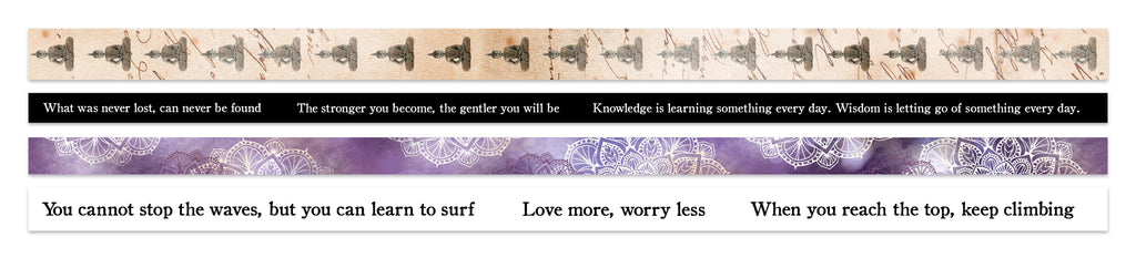 Includes 4 rolls of meditative and inspiration washi tape. Great for journalling, planners or cardmaking - washi tape is adhesive with a decorative design that coordinates with the larger Jenine's Mindful Art Collection.
